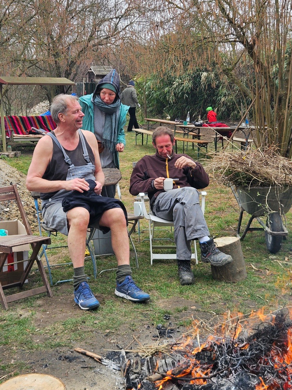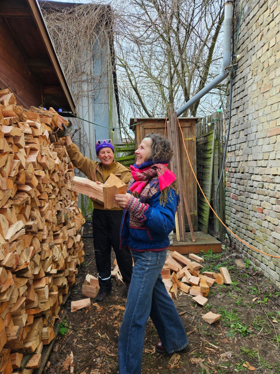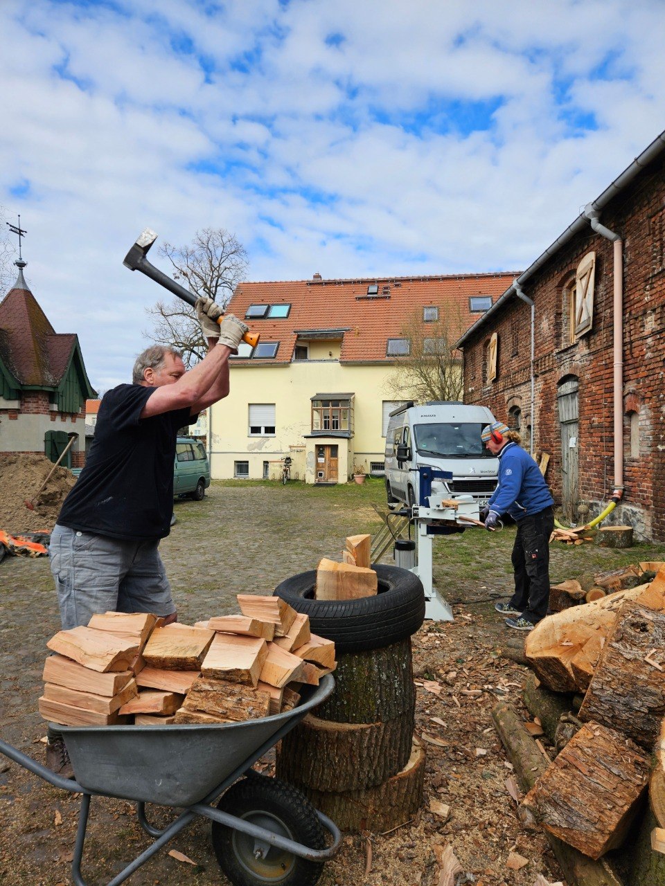 Die Frühjahrsaktion auf der Farm war diesmal richtig solide und anpackerisch. 25 Menschen haben mit uns zusammen die Basis für die Erneuerung der Außenküche gelegt, duftendes Holz für unsere Kamine für 2 kommende kalte Winter und viele lauschige Lagerfeuer gespalten und gestapelt.