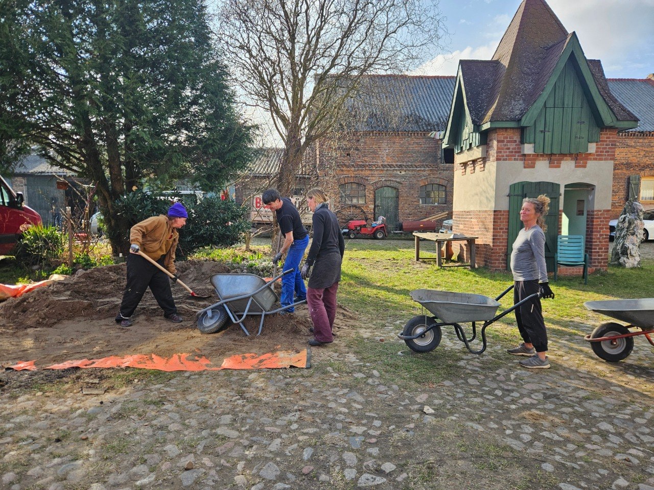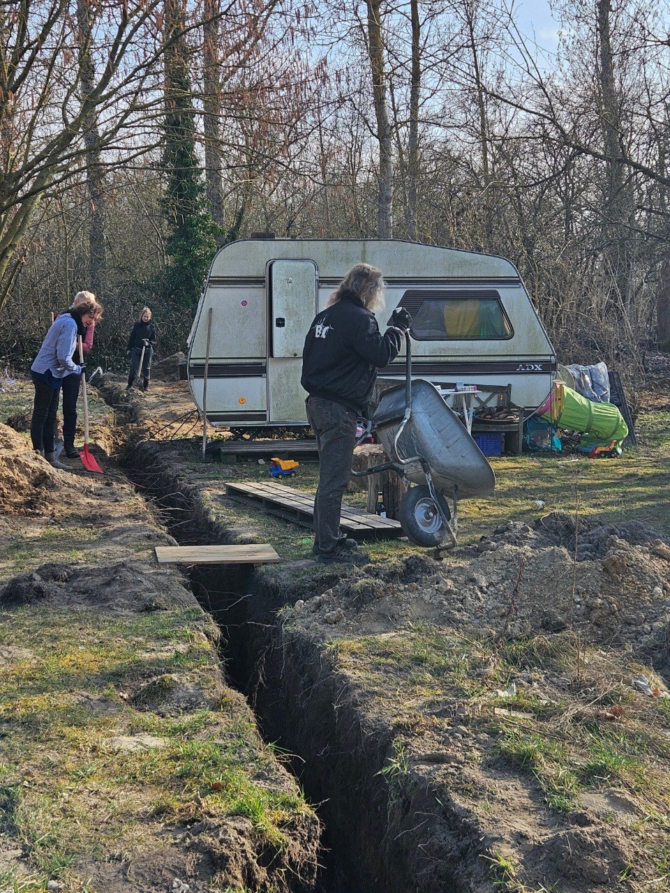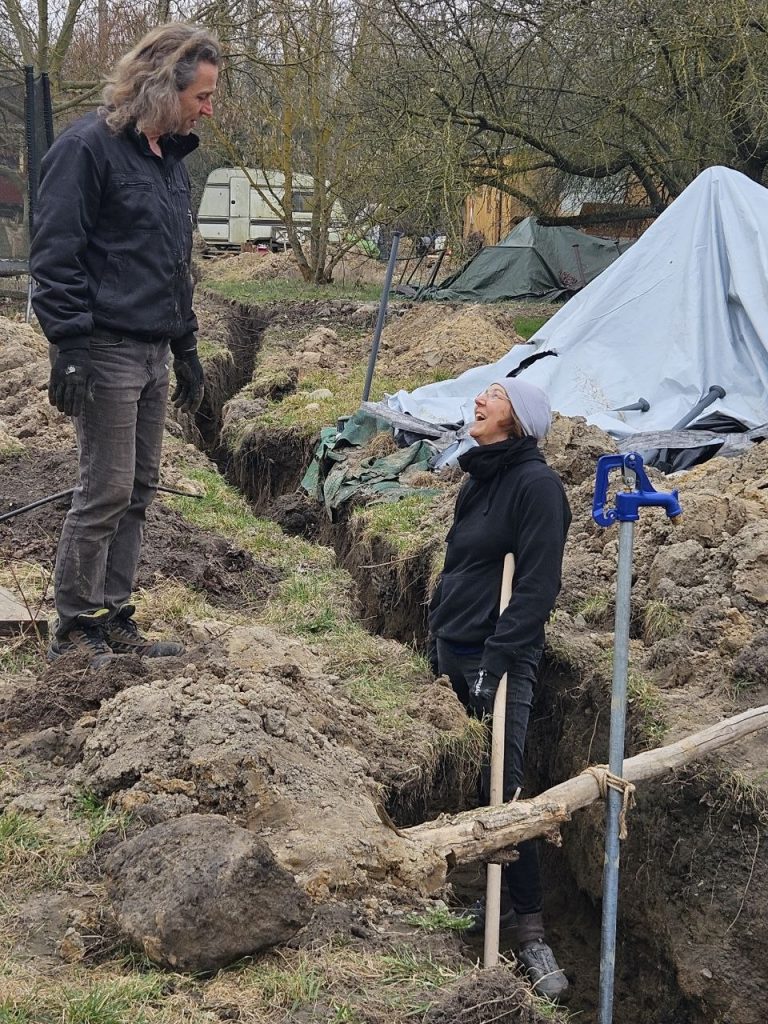 Die Frühjahrsaktion auf der Farm war diesmal richtig solide und anpackerisch. 25 Menschen haben mit uns zusammen die Basis für die Erneuerung der Außenküche gelegt, duftendes Holz für unsere Kamine für 2 kommende kalte Winter und viele lauschige Lagerfeuer gespalten und gestapelt.
